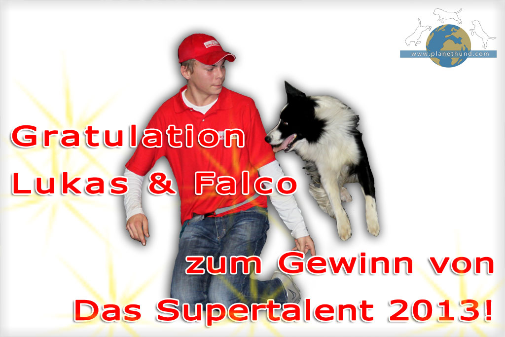 Lukas Pratschker und sein Border Collie Falco standen gestern, den 14. Dezember 2013, bei der Sendung Supertalent auf RTL im Finale. Im Halbfinale zeigten die beiden schon ihr Können zum Pitbull feat. Kesha-Song „Timber“ mit einer Wildwest-Show, im Finale dagegen war das Motto „Beach-Party“. Lukas & Falco hatten eine harte Konkurrenz durch die anderen Show-TeilnehmerInnen und doch entschieden ihre Fans mit 25,48 Prozent der Zuschauerstimmen per Telefon: