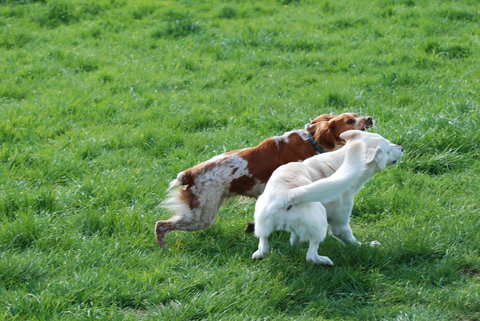 Dieses Phänomen kann man immer wieder bei Hundegruppen beobachten, bei denen mindestens ein Hund jagt. Jagt dieser nun ein Kaninchen und die Anderen laufen dem nach, schauen sie sich das Verhalten nicht nur ab – sie machen durch die Ausschüttung von Glückshormonen während der Hatz auch noch die Erfahrung, dass sich dieses Verhalten lohnt. Die Wahrscheinlichkeit dass sie es in Zukunft auch ohne das Beisein des jagenden Hundes zeigen, ist somit noch größer.