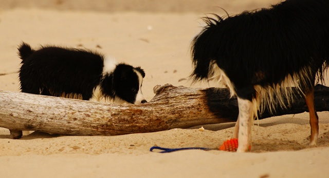 Ein Hund der sich nun eine solche Strategie abgeschaut hat, wird eventuell auch auf einen anderen Hund so reagieren, wenn dieser ihn ängstigt: Indem er sich langsam heran testet und sieht, dass der andere Hund ihm nichts tut.