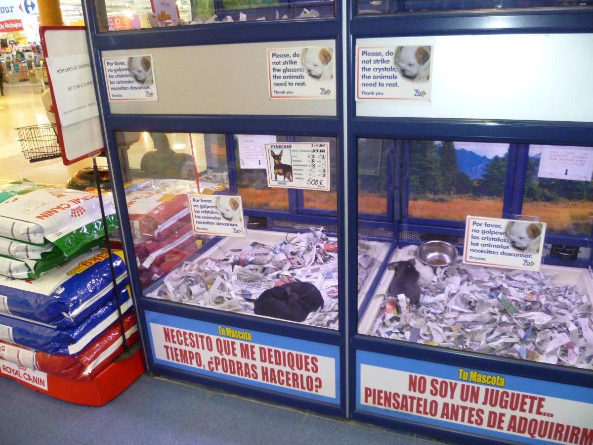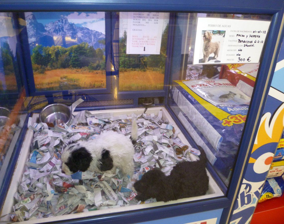 Da es in Spanien schon lange gang und gebe ist Hundewelpen in Glaskästen zu verkaufen, hatten wir nicht angenommen, dass es dort irgendwelche Auflagen geben würde. Doch bei Recherchen vor Ort stellte sich heraus, dass nur Welpen bei registrierten Züchter gekauft werden dürfen und nicht wie angenommen, jeder Hundewelpe dort verhökert werden darf. Es gibt also auch in Spanien Auflagen, um Hundewelpen in Zoogeschäften verkaufen zu dürfen.