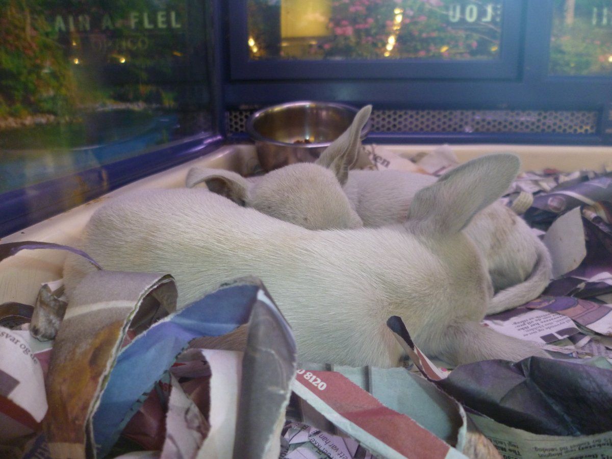 Ilona berichtete uns weiter, dass die Welpen dort 24 Stunden, Tag für Tag bis zum Verkauf (oder Rückgabe an den Züchter) in ihrer Behausung verbringen. Spaziergänge, Spiel oder Beschäftigung mit den Welpen gibt es nicht. Einmal am Tag wird gefüttert und sauber gemacht, ansonsten haben die Tiere absolut keine Ansprache. Für uns in Deutschland unvorstellbar, wo doch schon die Haltungsform im Zoo Zajac auf so viel Gegenwehr und Empörung stößt.